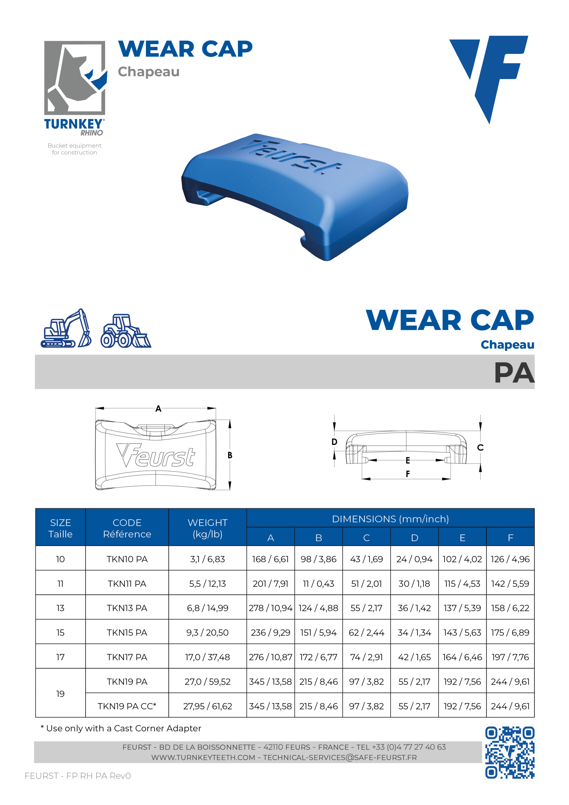 PA WH : Special wear cap for installation on Cast Corner 17 and 19. The cap protects the top of the Cast Corner and the wing start-up at the connection weld.